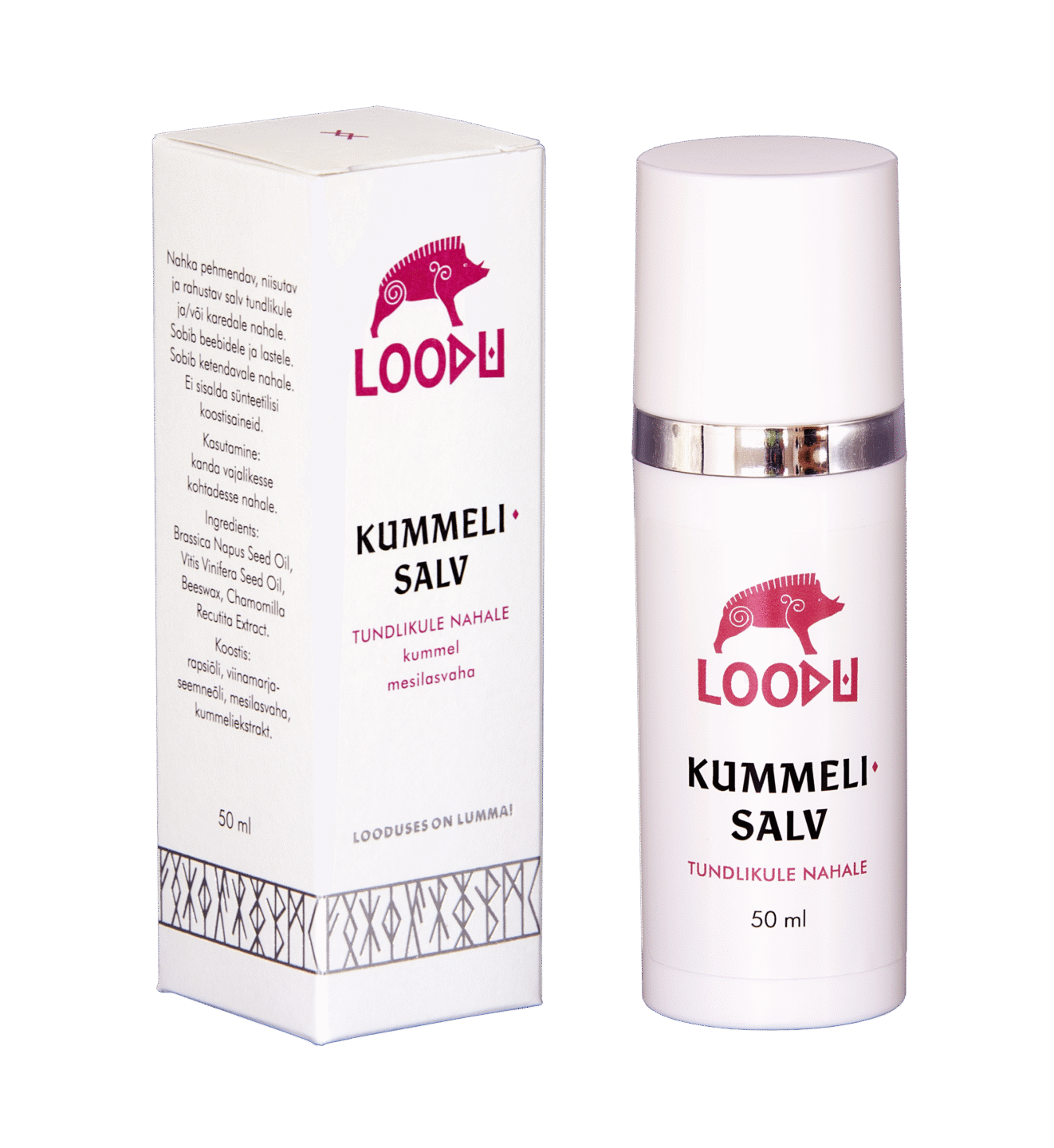 Loodu Kummelisalv 50 ml on pumppudelis ning seetõttu hügieenilisem ja mugavam kasutada. Toode ei sisalda sünteetilisi koostisosi, häirivaid lõhnaaineid ega eeterlikke õlisid. Tootes on kasutatud meeldivat mesilasvaha ja kerget ning imenduvat viinamarjaseemneõli. Mesilasvaha aitab pinnal niiskust paremini kinni hoida.